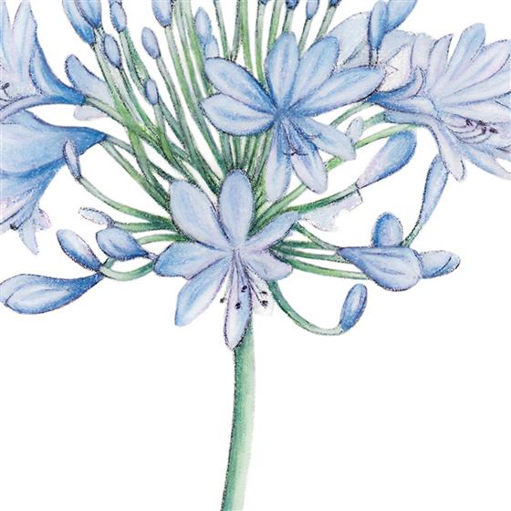 llustrated Agapanthus greetings card, perfect for sending as a thank you note or for Happy Birthday wishes. This card is left blank inside for your own personal message.