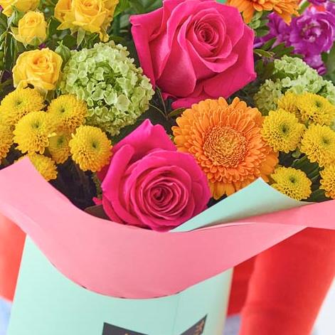 Make the most of Mother Nature's rainbow, with a gift box filled with beautifully bright blooms. Expertly arranged by a local florist it's a celebration of colour.