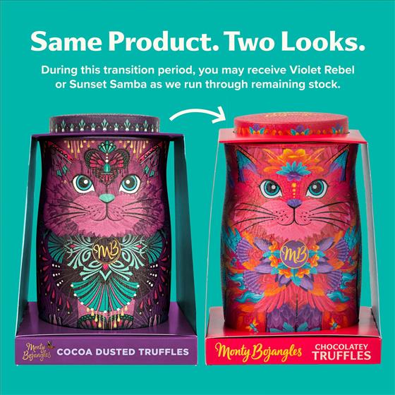 NEW! Monty Bojangles 135g Sunset Samba Cat Tin Chocolatey Truffles