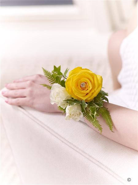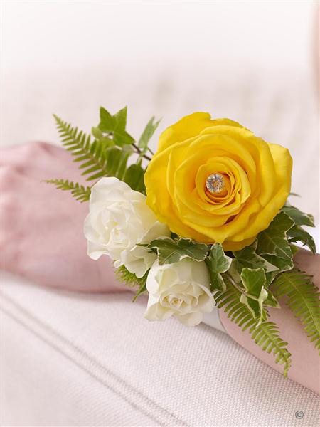 Yellow Rose and Fern Wrist Corsage 1